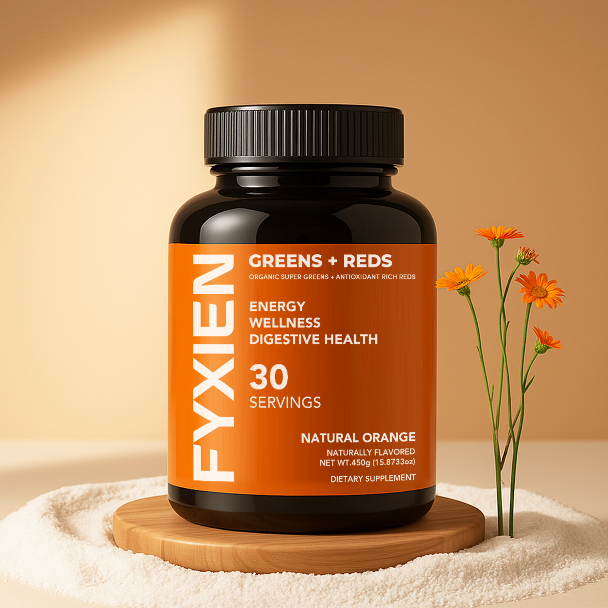 Mix one scoop of Fyxien's Greens + Reds supplement powderwith 10-16 oz. of water or juice, or add it to your smoothies for optimal health and wellness.